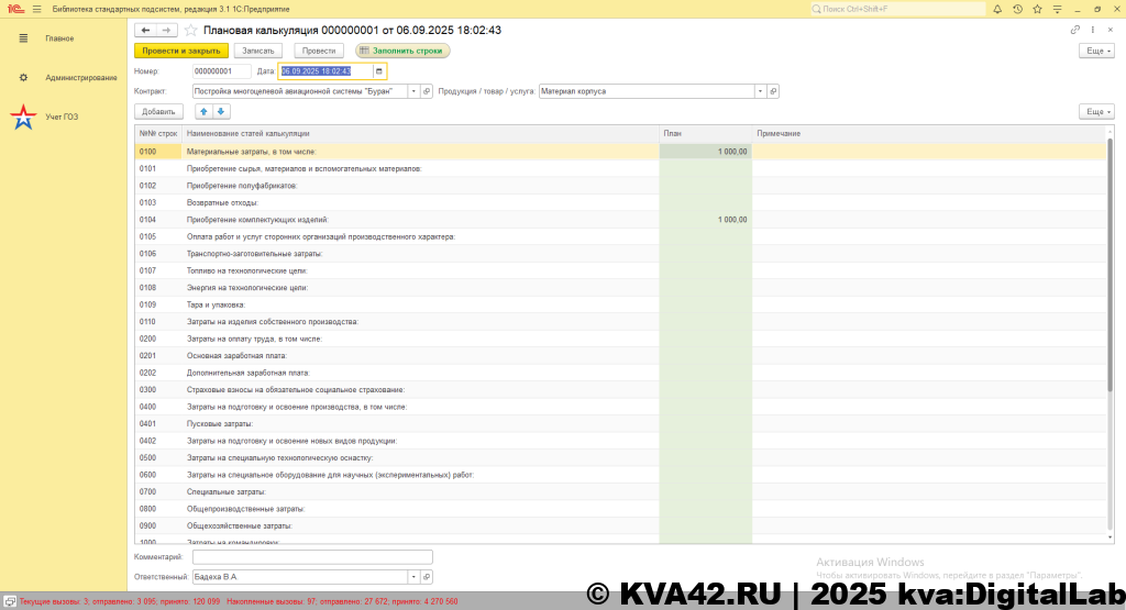 Всем привет! Я продолжаю “строить” свою конфигурацию для раздельного учета гособоронзаказа в 1С. Работа движется довольно бодро, постоянно добавляется различного рода функционал. Так, я приступил к разработке раздела калькуляции, а так же за прошедшее время реализован блок создания приказов об открытии заказов ГОЗ – готова печатная форма, причем она получилась гораздо более аккуратнее, чем у конкурентов. В целом общий подход к созданию конфигурации таков, что планируется делать все значительно скрупулезнее, удобнее и функциональнее.